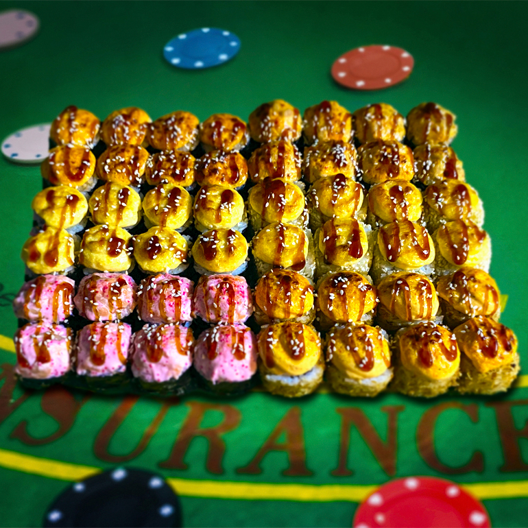 Перейдите в наше меню и выбирайте любимые суши, роллы или пиццу в CASINO 68. Ознакомьтесь с описаниями, ценами и доступными размерами. Добавьте выбранные блюда в корзину, указав нужное количество.
